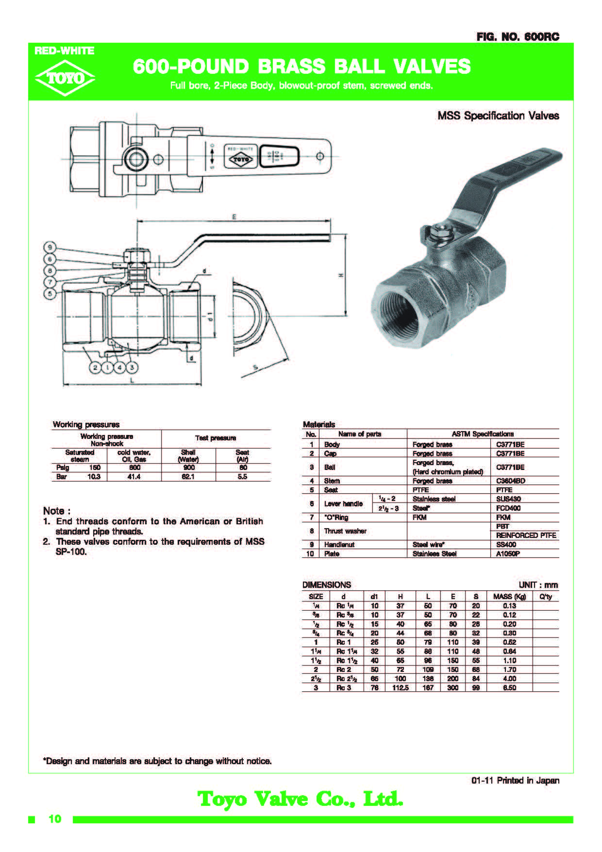 toyo valves บอลวาล์วทองเหลืองโตโย รุ่น 600 rc toyo brass ball valves