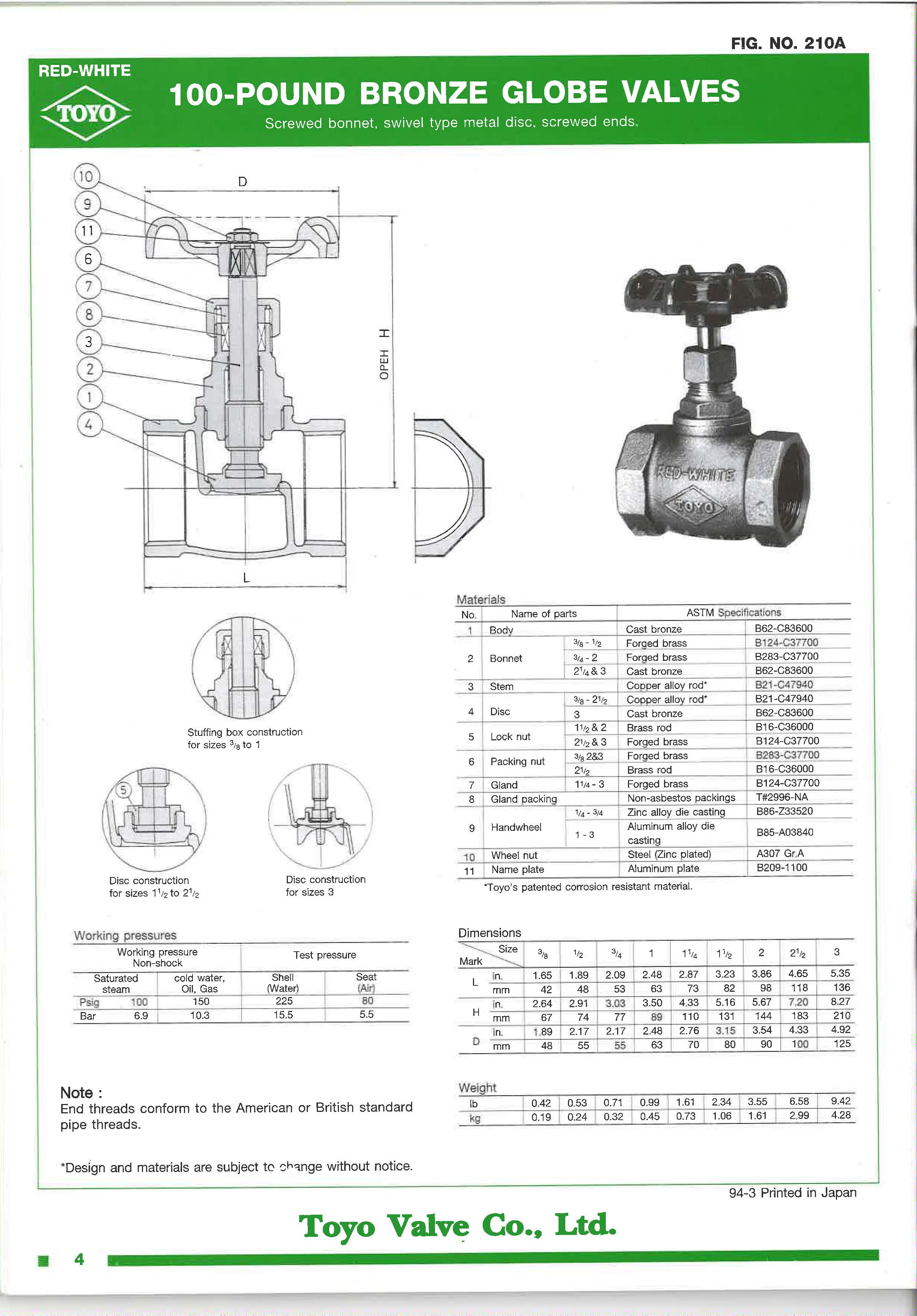 toyo bronze globe valves 210a