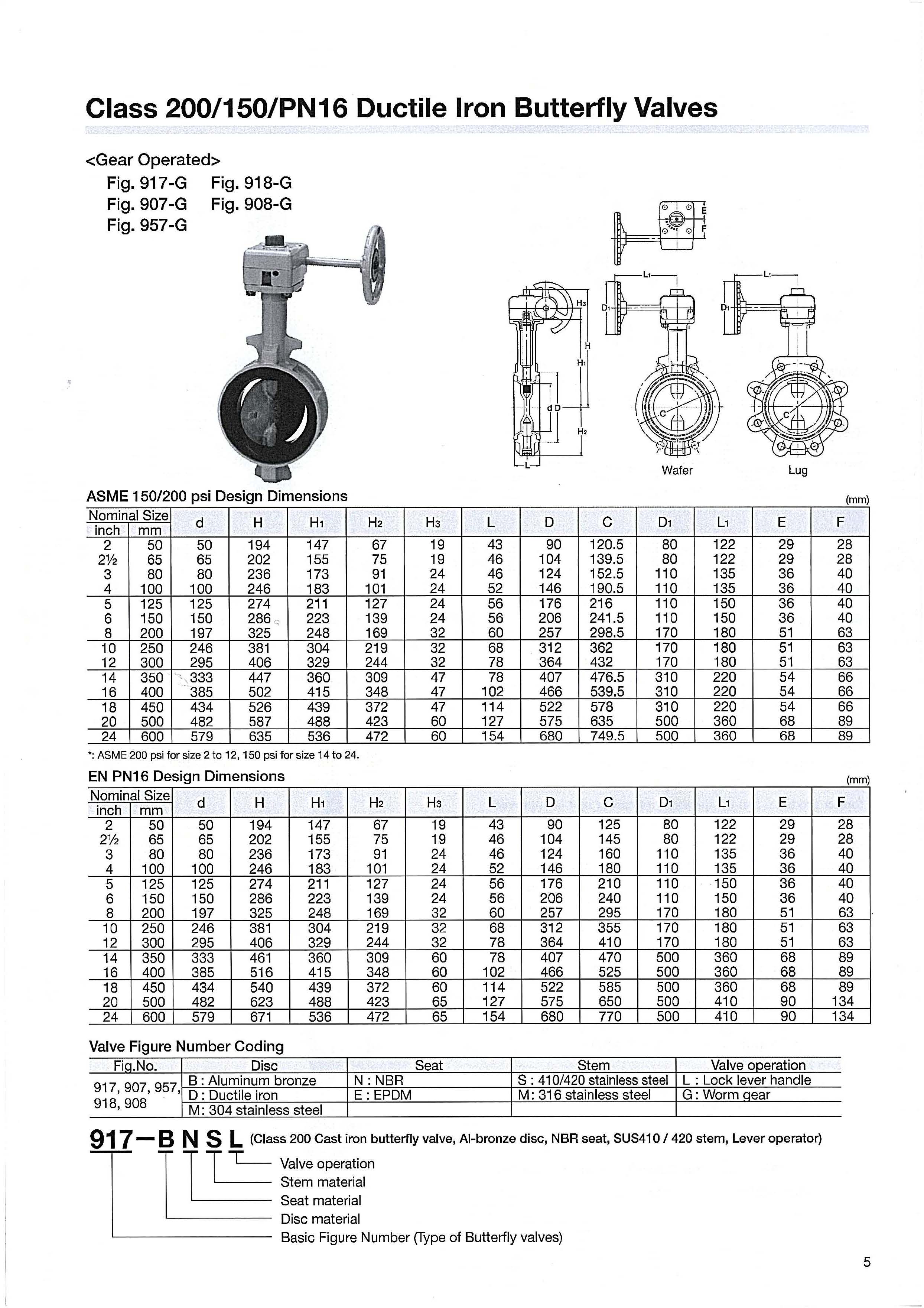 TOYO DUCTILE IRON BUTTERFLY VALVES LUG TYPE 918G GEAR TYPE